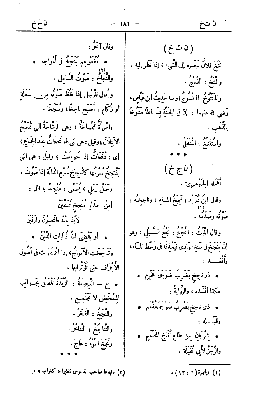 وتَنَاجَخَت الأَمْواجُ، إذا اضْطَرَبت في أصُول الأَجْرَاف حتى تُؤَثِّر فيها.