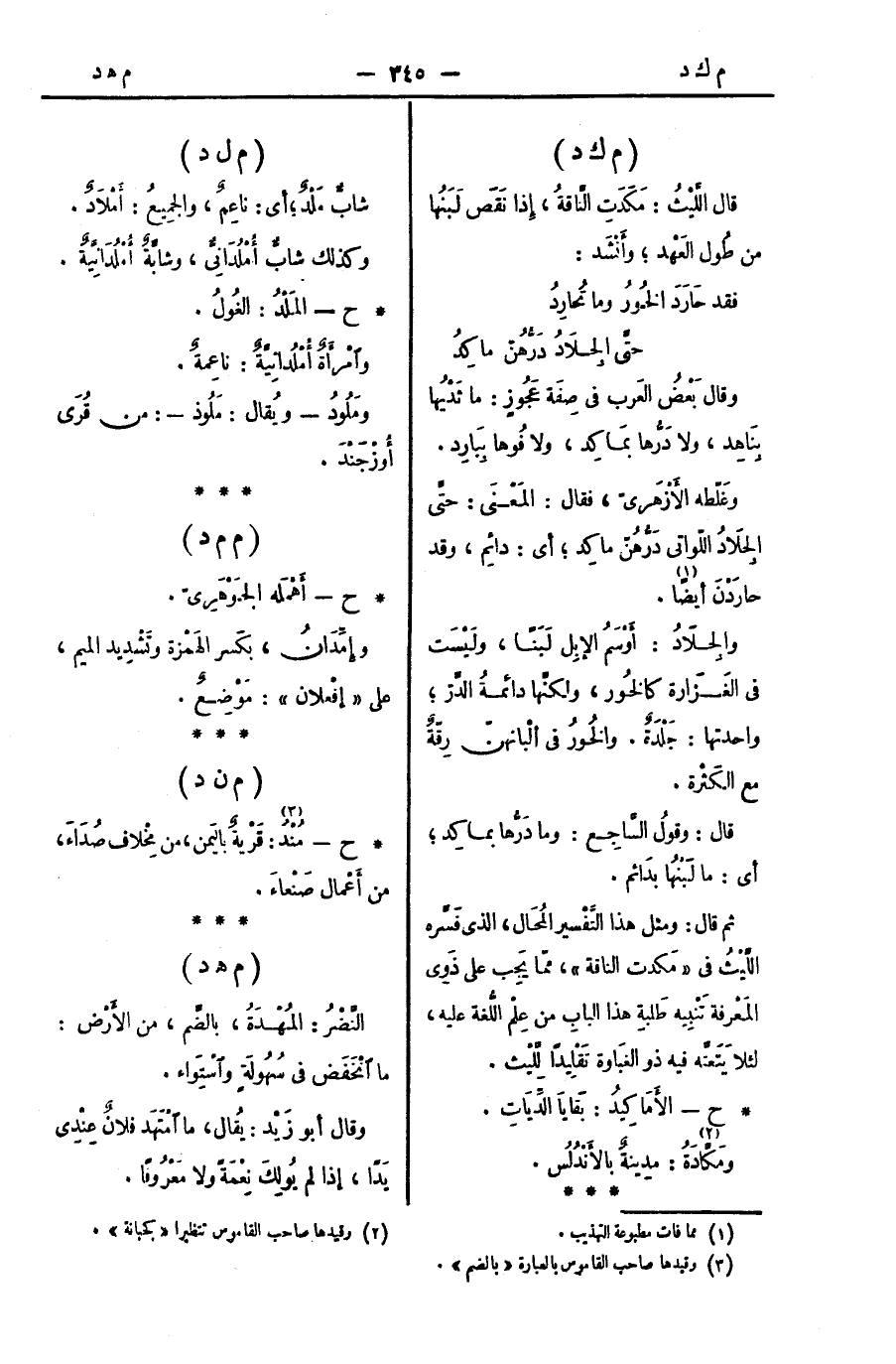 ثم قال: ومثل هذا التَّفْسير المُحَال، الذي فَسَّره اللَّيْثُ في " مَكدت الناقة "، ممّا يَجِب على ذَوِي المَعْرفة تَنْبِيه طَلبةِ هذا البابِ من عِلْم اللُّغة عليه، لئلا يَتَعتَّه فيه ذو الغبَاوة تَقْلِيدًا لِلَّيْث.