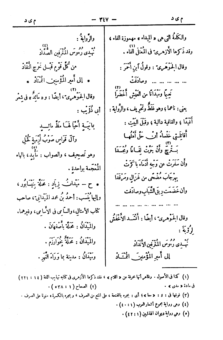 وقال الجَوْهريّ، أيضًا: و " مَائِدٌ " في شِعْر أبي ذُؤَيْب: