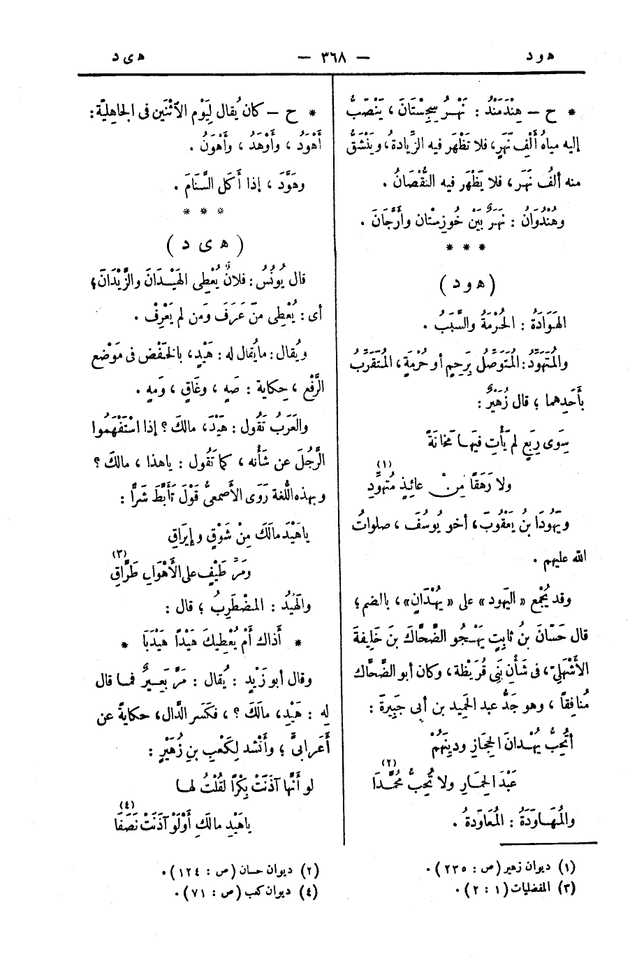 * ح - كان يُقال لِيَوْم الاثْنَين في الجاهِليّة: أَهْوَدُ، وأَوْهَدُ، وأَهْوَنُ.
