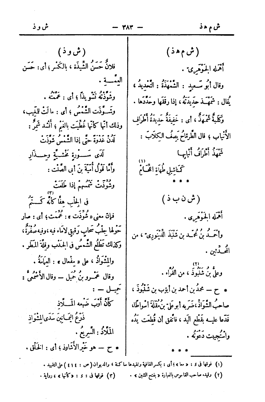 وشَوَّذَت الشَّمْسُ؛ أي: مالَتْ للمَغِيب، وذلك أنّها كأنّها غُطِّيَت بالغَيْم؛ أَنْشد شَمِرٌ: