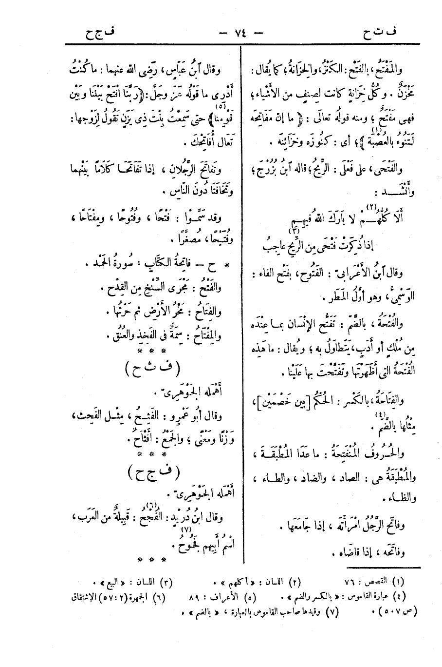 وقال ابنُ عَبّاسٍ، رَضِي الله عنهما: ما كُنْتُ أَدْرِي ما قَوْلُه عَزّ وجَلَّ: (رَبَّنَا افْتَحْ بَيْنَنا وبَيْن قَوْمِنا) حتى سَمِعْتُ بِنْتَ ذِي يَزَنٍ تَقُولُ لِزَوْجها: تَعَال أُفَاتِحْكَ.
