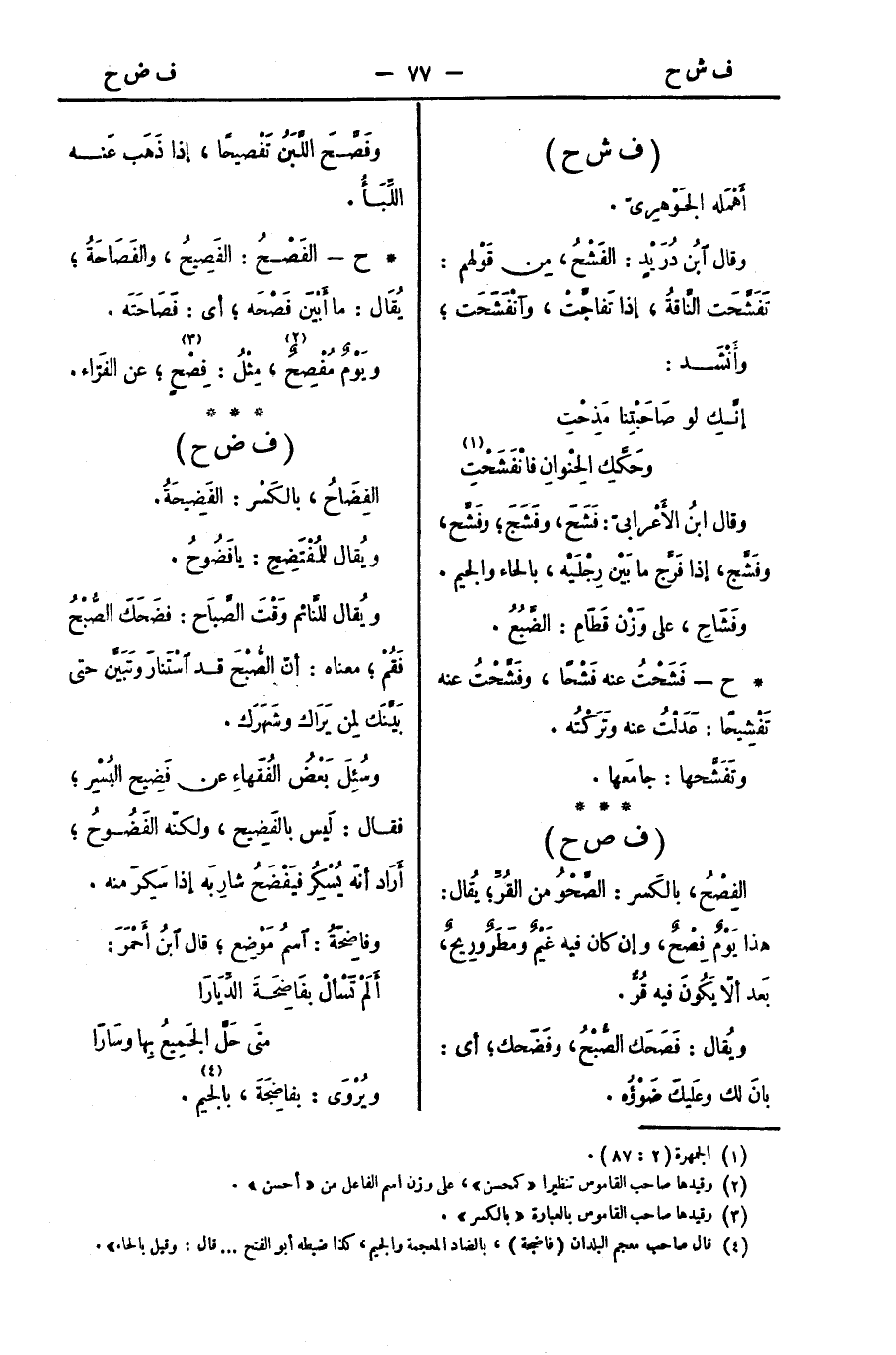 * ح - الفَصْحُ: الفَصِيحُ، والفَصَاحَةُ؛ يُقَال: ما أَبْيَن فَصْحَه؛ أي: فَصَاحَتَه.