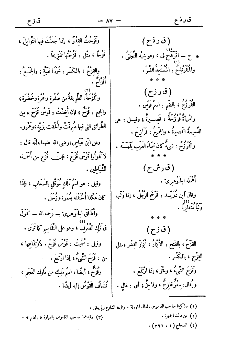 القَزْحُ، بالفَتح: الأَبْزارُ، أَبْزارَ القِدْر، مثل القِزْح، بالكَسْر.