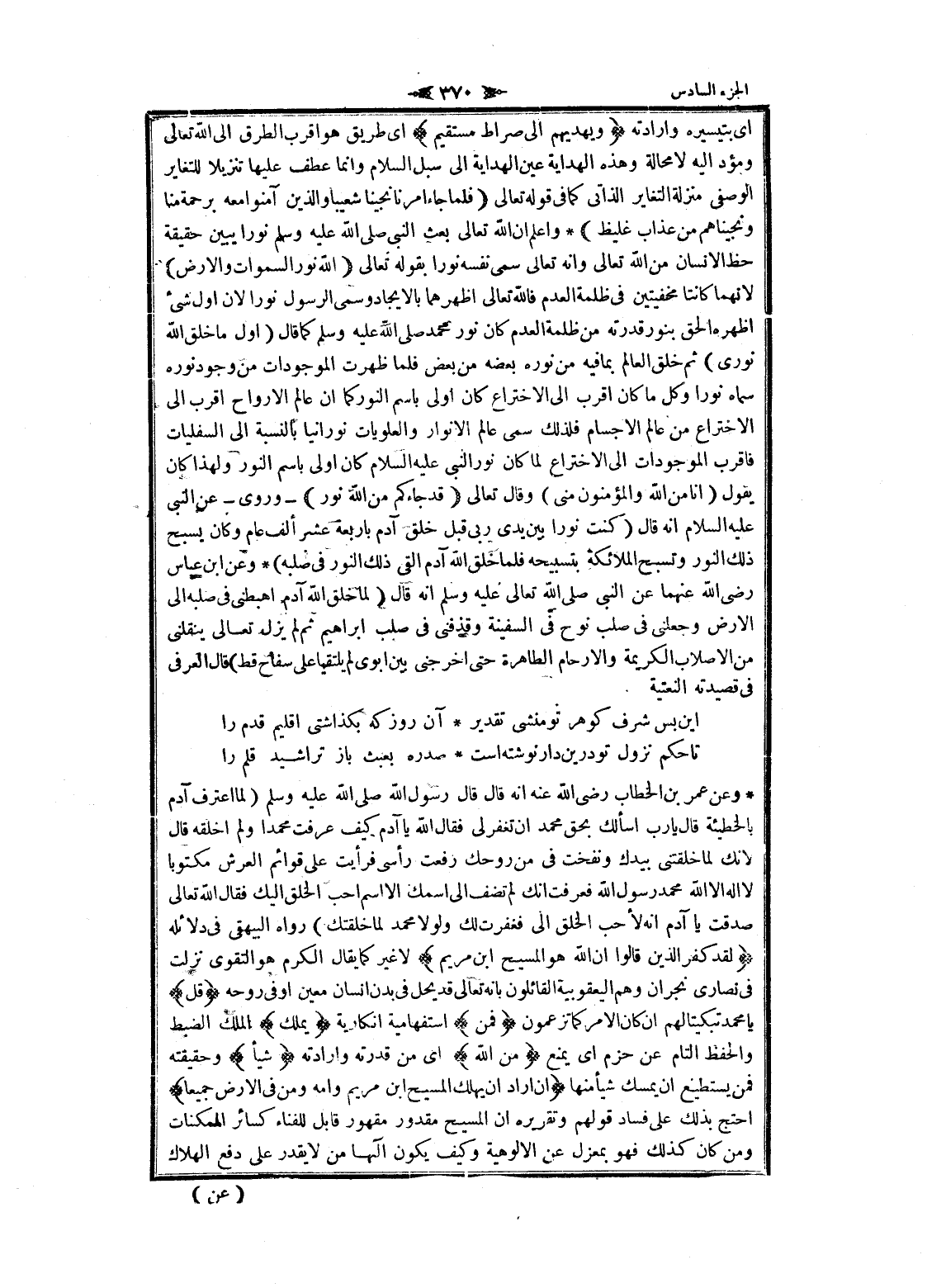 وعن عمر بن الخطاب رضى الله عنه انه قال قال رسول الله صلى الله عليه وسلم (لما اعترف آدم بالخطيئة قال يا رب اسألك بحق محمد ان تغفر لى فقال الله يا آدم كيف عرفت محمدا ولم أخلقه قال لانك لما خلقتنى بيدك ونفخت فى من روحك رفعت رأسى فرأيت على قوائم العرش مكتوبا لا اله الا الله محمد رسول الله فعرفت انك لم تضف الى اسمك الا اسم أحب الخلق إليك فقال الله تعالى صدقت يا آدم انه لأحب الخلق الى فغفرت لك ولولا محمد لما خلقتك) رواه البيهقي فى دلائله لَقَدْ كَفَرَ الَّذِينَ قالُوا إِنَّ اللَّهَ هُوَ الْمَسِيحُ ابْنُ مَرْيَمَ لا غير كما يقال الكرم هو التقوى نزلت فى نصارى نجران وهم اليعقوبية القائلون بانه تعالى قد يحل فى بدن انسان معين او فى روحه قُلْ يا محمد تبكيتا لهم ان كان الأمر كما تزعمون فَمَنْ استفهامية انكارية يَمْلِكُ الملك الضبط والحفظ التام عن حزم اى يمنع مِنَ اللَّهِ اى من قدرته وإرادته شَيْئاً وحقيقته فمن يستطيع ان يمسك شيأ منها إِنْ أَرادَ أَنْ يُهْلِكَ الْمَسِيحَ ابْنَ مَرْيَمَ وَأُمَّهُ وَمَنْ فِي الْأَرْضِ جَمِيعاً احتج بذلك على فساد قولهم وتقريره ان المسيح مقدور مقهور قابل للفناء كسائر الممكنات ومن كان كذلك فهو بمعزل عن الالوهية وكيف يكون آلها من لا يقدر على دفع الهلاك