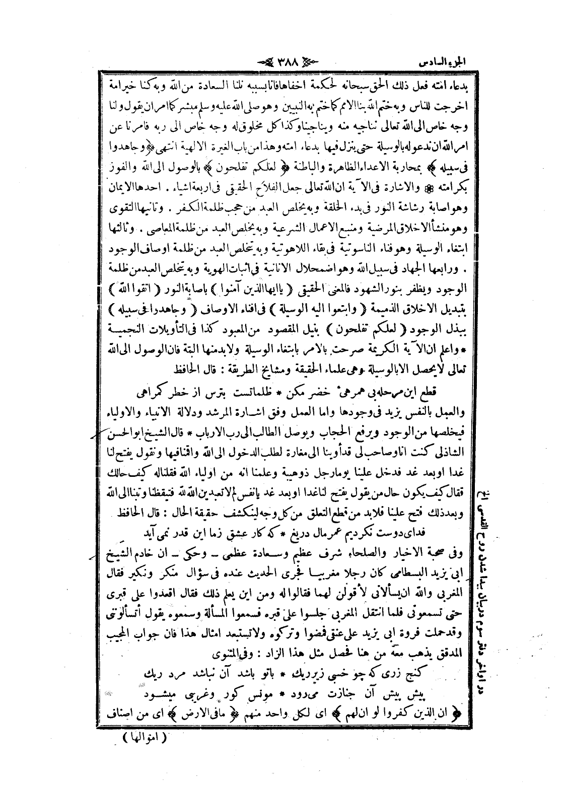 واعلم ان الآية الكريمة صرحت بالأمر بابتغاء الوسيلة ولا بد منها البتة فان الوصول الى الله تعالى لا يحصل الا بالوسيلة وهى علماء الحقيقة ومشايخ الطريقة: قال الحافظ