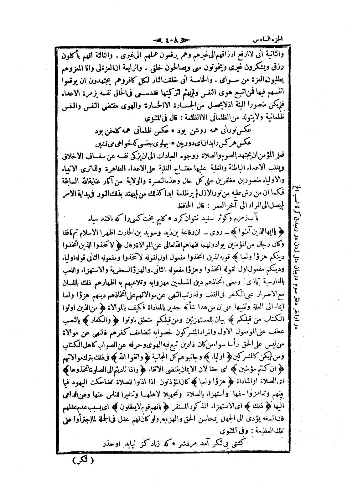 فعلى المؤمن ان يجتهد بالصوم والصلاة ووجوه العبادات الى ان يزكى نفسه عن سفساف الأخلاق ويغلب الأعداء الباطنة والغلبة عليها مفتاح الغلبة على الأعداء الظاهرة ولذاترى الأنبياء والأولياء منصورين مظفرين على كل حال وهذه النصرة والولاية من آثار عناية الله السابقة فكما ان من رش عليه من نور الأزل لم ير ظلمة ابدا كذلك من لم يهتد بذلك النور فى بداية الأمر لم يصل الى المراد الى آخر العمر: قال الحافظ