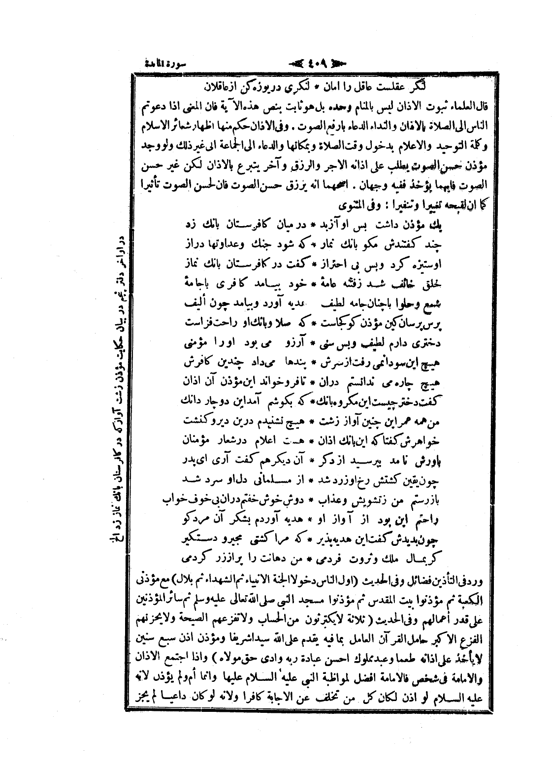 پرس پرسان كين مؤذن كو كجاست ... كه صلا وبانك او راحت فزاست