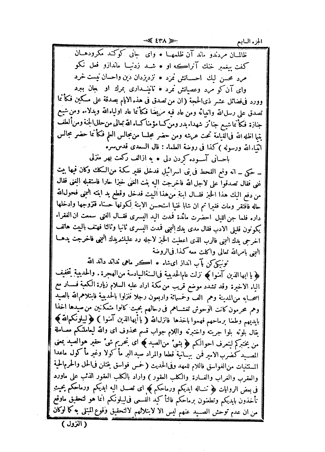 وورد فى فضائل عشر ذى الحجة (ان من تصدق فى هذه الأيام بصدقة على مسكين فكأنما تصدق على رسل الله وأنبيائه ومن عاد فيه مريضا فكأنما عاد اولياء الله وبدلاءه ومن شيع جنازة فكأنما شيع جنائز شهداء بدر ومن كسا مؤمنا كساه الله تعالى من حلل الجنة ومن ألطف يتيما اظله الله فى القيامة تحت عرشه ومن حضر مجلسا من مجالس العلم فكأنما حضر مجالس أنبياء الله ورسوله) كذا فى روضة العلماء: قال السعدي قدس سره