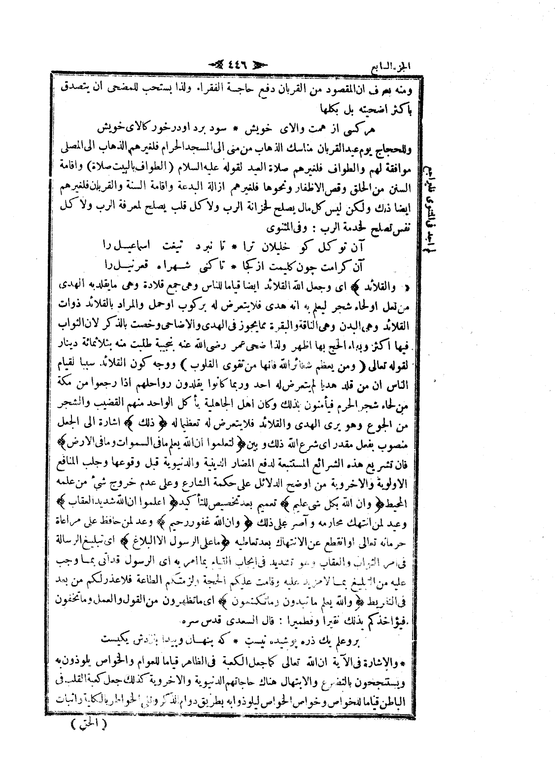 وللحجاج يوم عيد القربان مناسك الذهاب من منى الى المسجد الحرام فلغيرهم الذهاب الى المصلى موافقة لهم والطواف فلغيرهم صلاة العيد لقوله عليه السلام (الطواف بالبيت صلاة) واقامة السنن من الحلق وقص الأظفار ونحوها فلغيرهم ازالة البدعة واقامة السنة والقربان فلغيرهم ايضا ذلك ولكن ليس كل مال يصلح لخزانة الرب ولا كل قلب يصلح لمعرفة الرب ولا كل نفس تصلح لخدمة الرب: وفى المثنوى