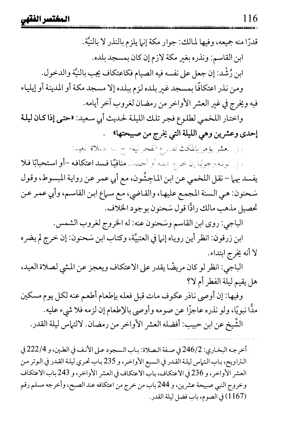 وفي كونه وجوبًا إن خرج قبله أو أحد منافيًا فسد اعتكافه- أو استحبابًا فلا يفسد بهما- نقل اللخمي عن ابن الماجشون, مع أبي عمر عن رواية المبسوط, وقول سحنون: هي السنة المجمع عليها, والقاضي, مع سماع ابن القاسم, وأبي عمر عن تحصيل مذهب مالك رادًا قول سحنون بوجود الخلاف.