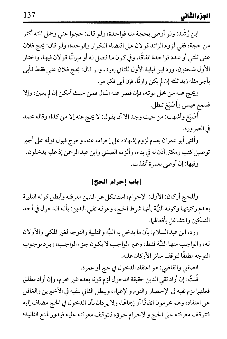 ابن رُشد: ولو أوصى بحجة منه فواحدة، ولو قال: حجوا عني وحمل ثلثه أكثر من حجة؛ ففي لزوم الزائد قولان على اقتضاء التكرار والوحدة، ولو قال: يحج فلان عي ثلثي أو عدد فواحدة اتفاقًا، وفي كون ما فضل له أو ميراثًا قولان فيها، واختار الأول سحنون، ورد ابن لبابة الأول للثاني بعيد، ولو قال: يحج فلان عني فقط فأبى بأجر مثله زيد ثلثه إن لم يكن وارثًا، فإن أبى فكما مر.