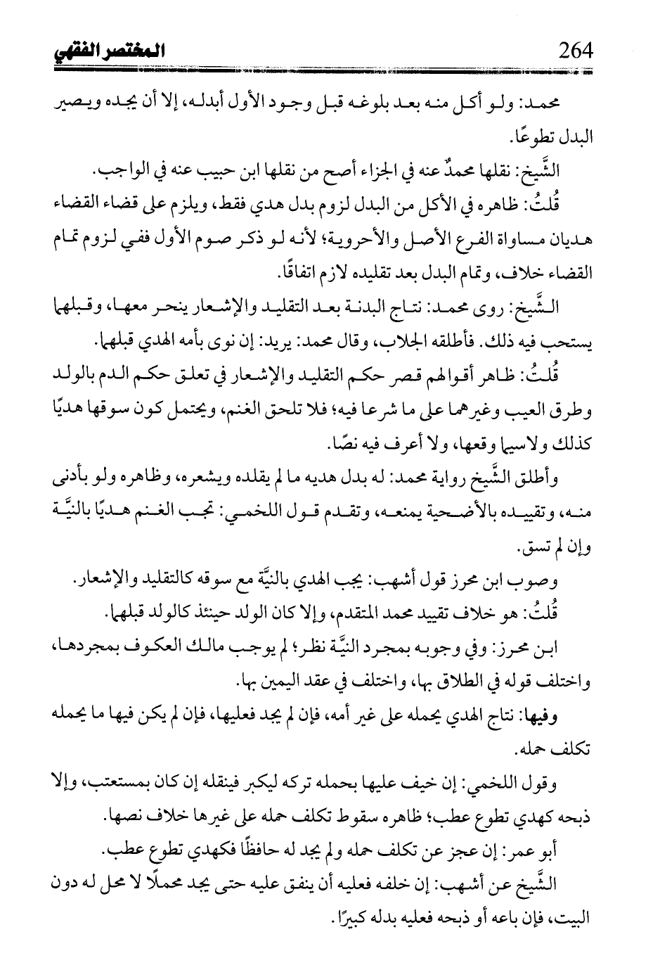 الشيخ: روى محمد: نتاج البدنة بعد التقليد والإشعار ينحر معها، وقبلهما يستحب فيه ذلك. فأطلقه الجلاب، وقال محمد: يريد: إن نوى بأمه الهدي قبلهما.
