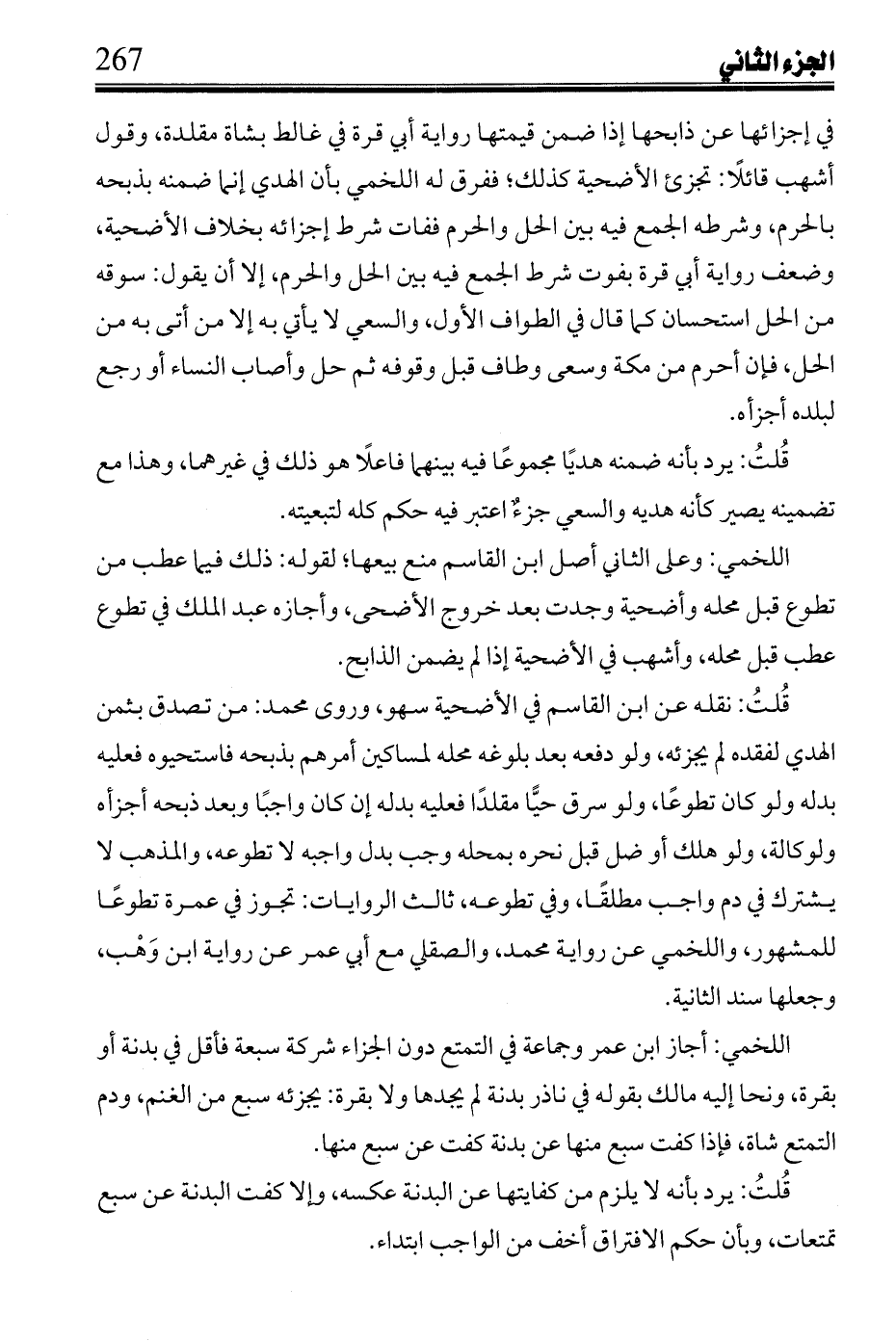 قلت: نقله عن ابن القاسم في الأضحية سهو، وروى محمد: من تصدق بثمن الهدي لفقده لم يجزئه، ولو دفعه بعد بلوغه محله لمساكين أمرهم بذبحه فاستحيوه فعليه بدله ولو كان تطوعًا، ولو سرق حيًا مقلدًا فعليه بدله إن كان واجبًا وبعد ذبحه أجزأه ولوكالة، ولو هلك أو ضل قبل نحره بمحله وجب بدل واجبه لا تطوعه، والمذهب لا يشترك في دم واجب مطلقًا، وفي تطوعه، ثالث الروايات: تجوز في عمرة تطوعًا للمشهور، واللخمي عن رواية محمد، والصقلي مع أبي عمر عن رواية ابن وهب، وجعلها سند الثانية.