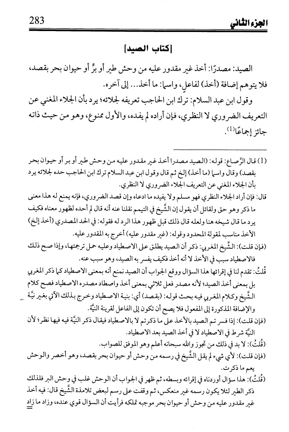 الصيد: مصدرًا: أخذ غير مقدور عليه من وحش طير أو بر أو حيوان بحر بقصد، فلا يتوهم إضافة (أخذ) لفاعٍل، واسما: ما اخذ ... إلى آخره.