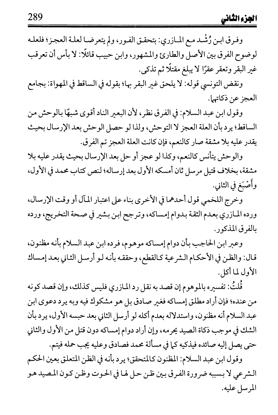 قلت: تفسيره بالموهوم إن قصد به نقل رد فليس كذلك، وإن قصد كونه من عنده؛ فإن أراد مطلق إمساكه فغير صادق بل هو مشكوك فيه وبه يرد دعوى ابن عبد السلام أنه مظنون، واستدلاله بعدم أكله لو أرسل الثاني بعد حبسه الأول، يرد بأن الشك في موجب ذكاة الصيد يحرمه، وإن أراد دوام إمساكه دون قتل من الأول والثاني حتى يصل إليه صائده فيذكيه كما في مسألة محمد فصادق وعليه يجب حمله فيتم.