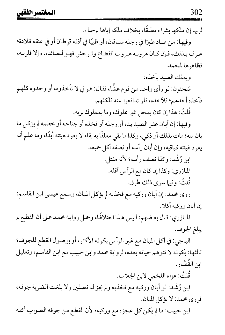 ابن رشد: لو أبان وركيه مع فخديه ولم يجز له نصفين ولا بلغت الضربة جوفه, فروى محمد: لا يؤكل المبان.