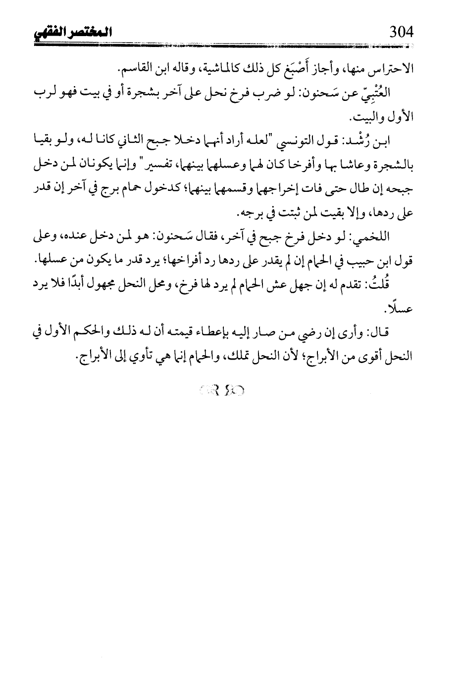 ابن رشد: قول التونسي "لعله أراد إنهما دخلا جبح الثاني كانا له, ولو بقيا بالشجرة وعاشا بها وأفرخا كان لهما وعسلهما بينهما, تفسير" وإنما يكونان لم دخل جبحه إن طال حتى فات إخراجهما وقسمهما بينهما؛ كدخول حمام برج في آخر إن قدر على ردها, وإلا بقيت لمن ثبتت في برجه.