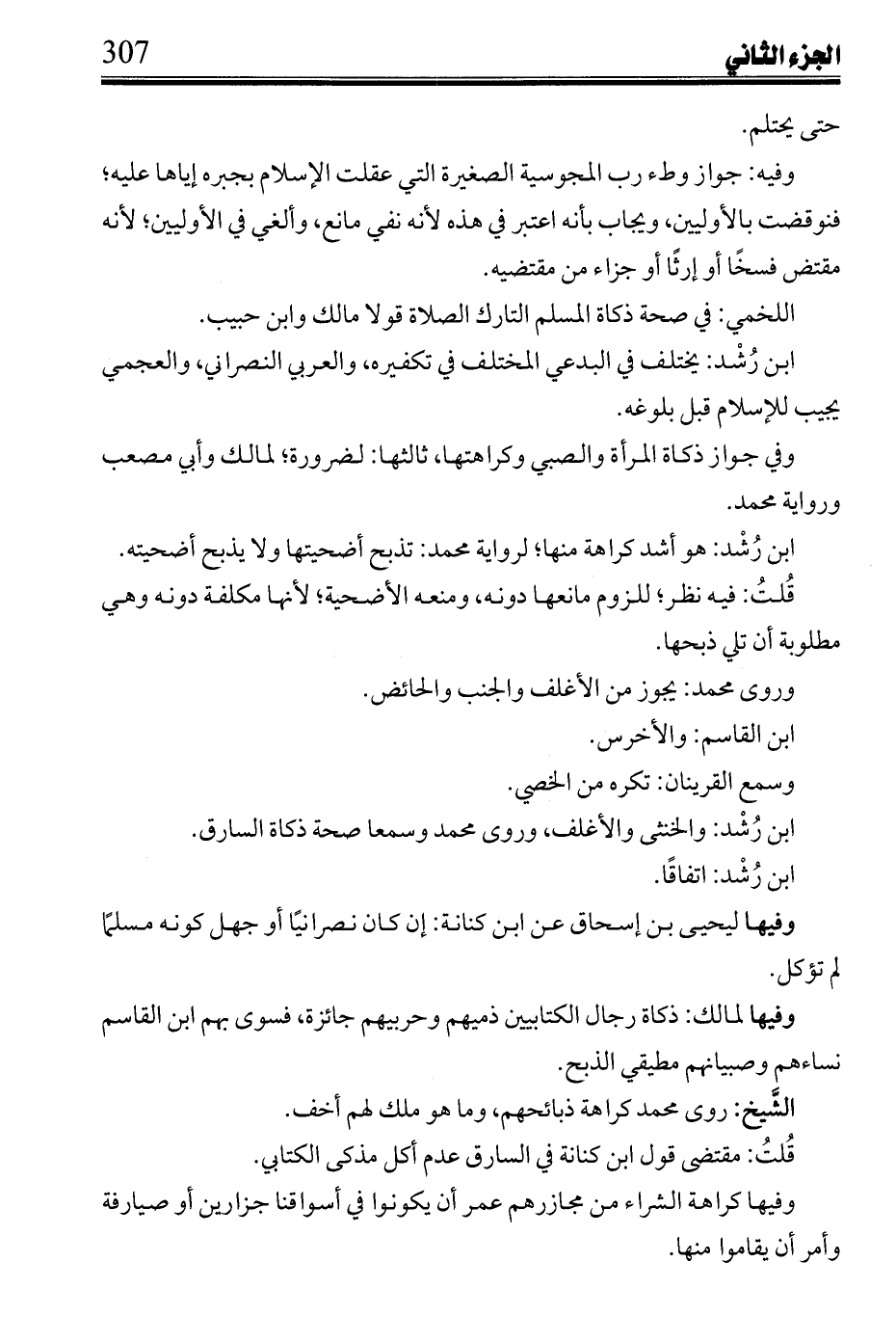 ابن رشد: يختلف في البدعي المختلف في تكفيره, والعربي النصراني, والعجمي يجيب للإسلام قبل بلوغه.