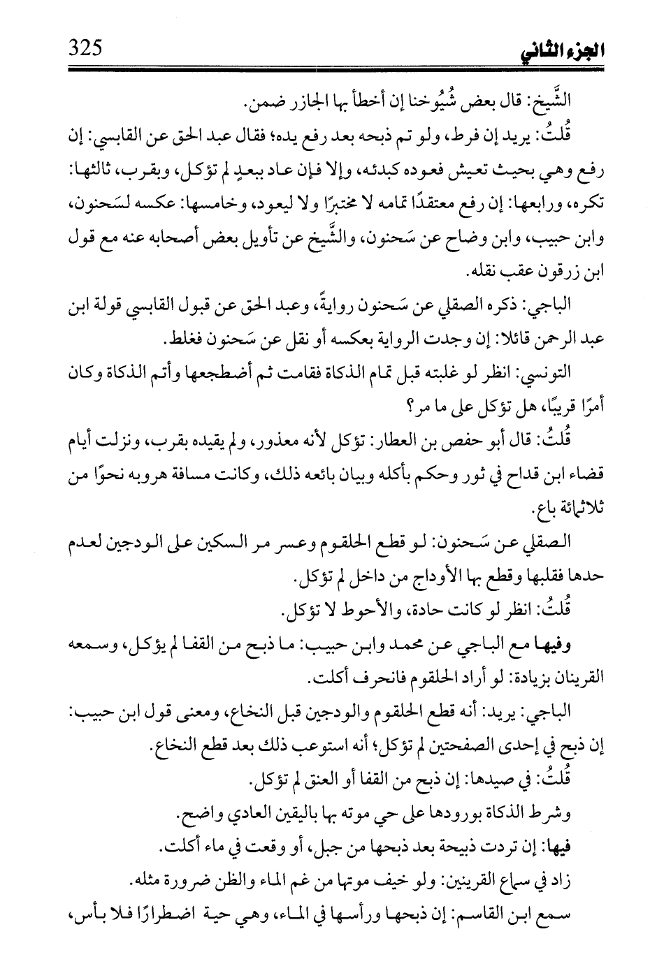 الباجي: ذكره الصقلي عن سحنون روايًة، وعبد الحق عن قبول القابسي قوله ابن عبد الرحمن قائلًا: إن وجدت الرواية بعكسه أو نقل عن سحنون فغلط.