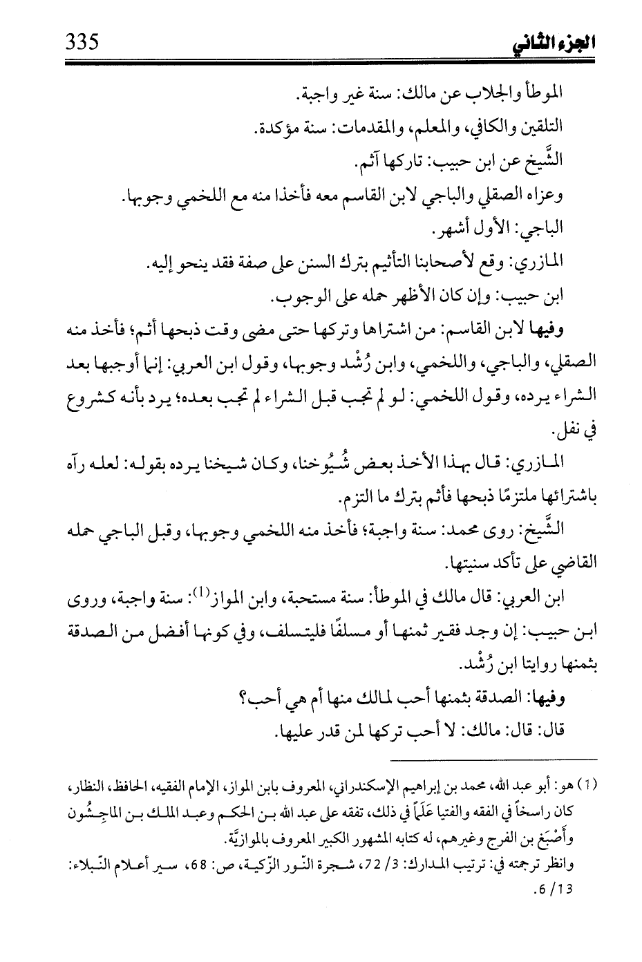 ابن العربي: قال مالك في الموطأ: سنة مستحبة، وابن المواز: سنة واجبة، وروى ابن حبيب: إن وجد فقير ثمنها أو مسلفًا فليتسلف، وفي كونها أفضل من الصدقة بثمنها روايتا ابن رشد.