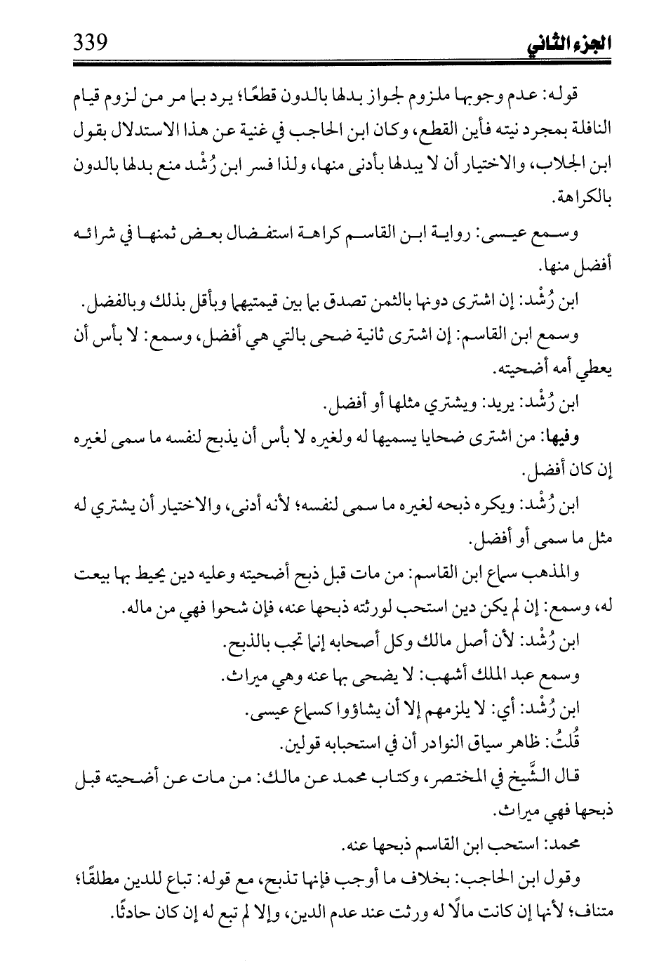 ابن رشد: لأن أصل مالك وكل أصحابه إنما تجب بالذبح.