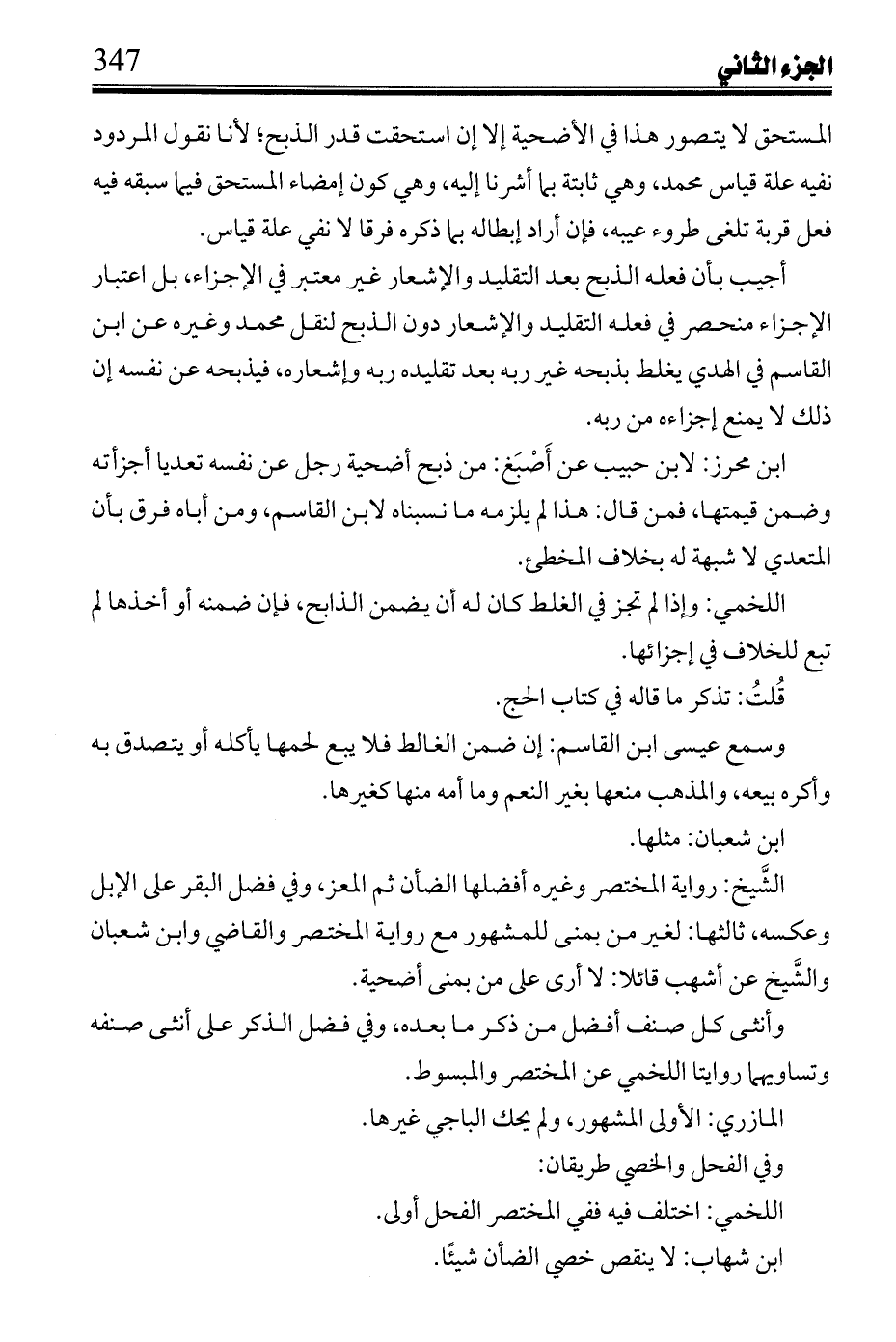 الشيخ: رواية المختصر وغيره أفضلها الضأن ثم المعز، وفي فضل البقر على الإبل وعكسه، ثالثها: لغير من بمنى للمشهور مع رواية المختصر والقاضي وابن شعبان والشيخ عن أشهب قائلا: لا أرى على من بمنى أضحية.