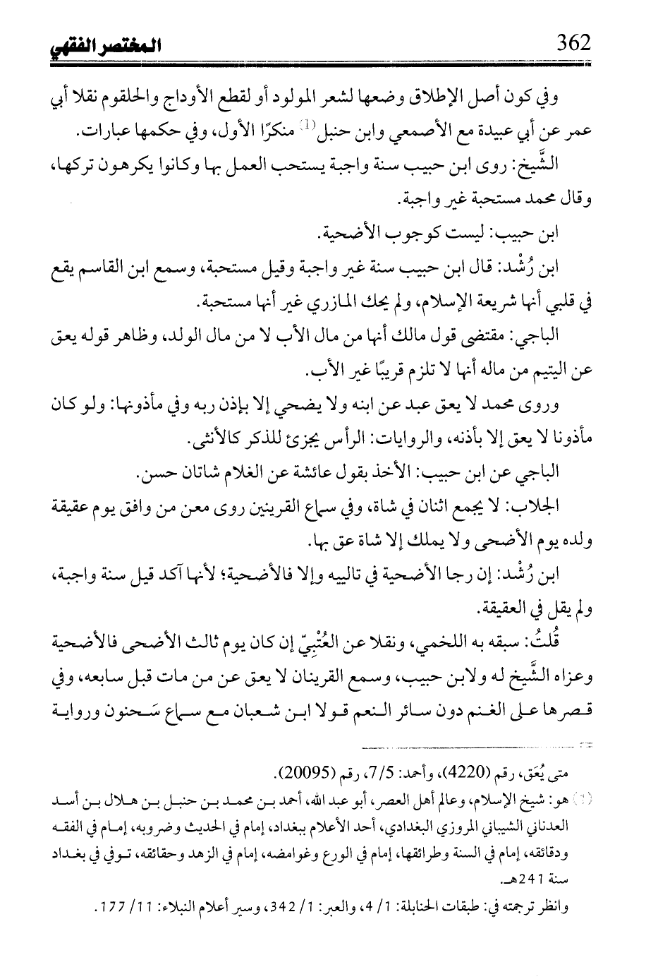 الباجي عن ابن حبيب: الأخذ بقول عائشة عن الغلام شاتان حسن.
