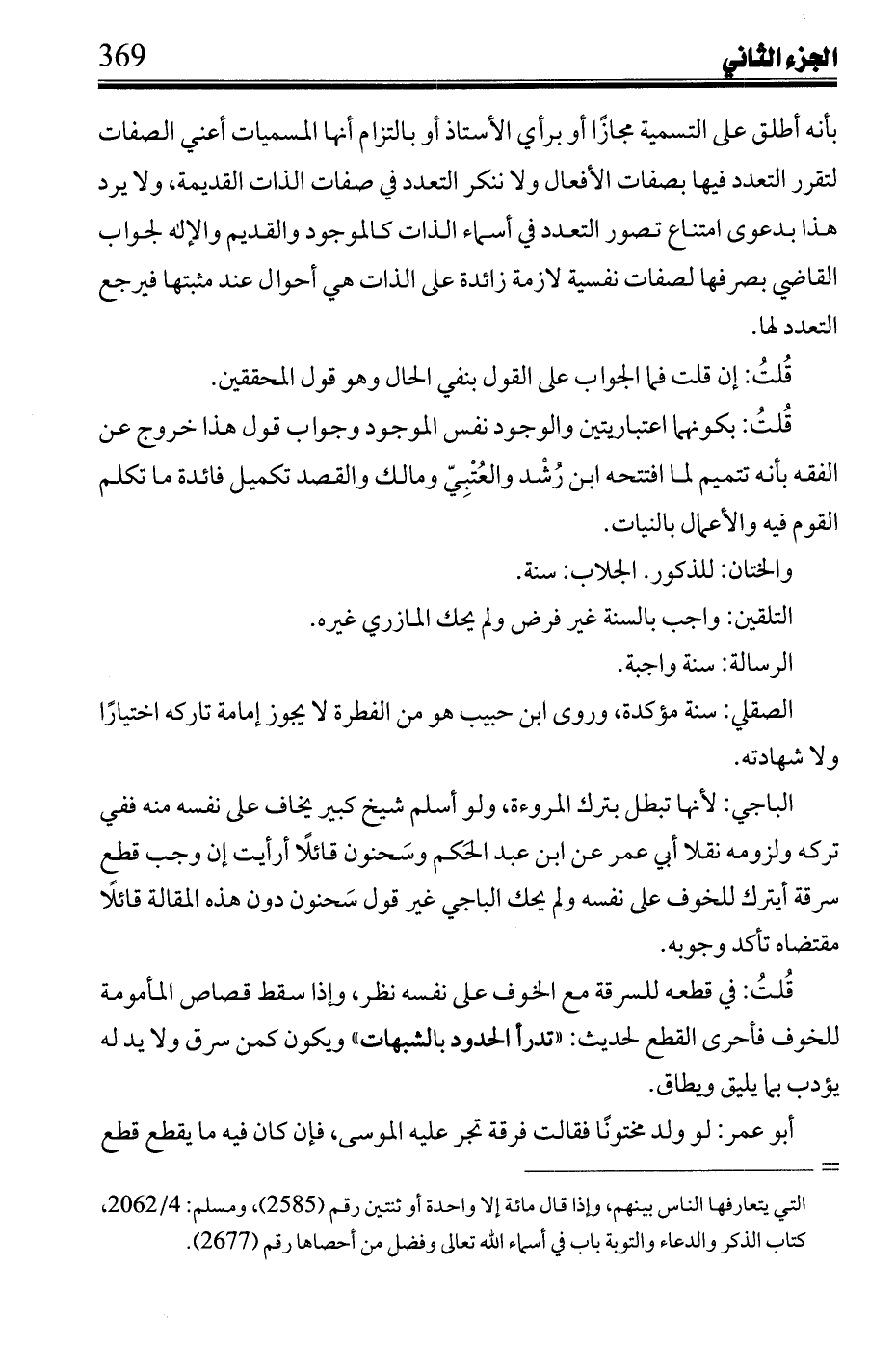 بأنه أطلق على التسمية مجازاً أو برأي الأستاذ أو بإلتزام أنها المسميات أعني الصفات لتقرر التعدد فيها بصفات الأفعال ولا ننكر التعدد في صفات الذات القديمة، ولا يرد هذا بدعوى امتناع تصور التعدد في أسماء الذات كالموجود والقديم والإله لجواب القاضي بصرفها لصفات نفسية لازمة زائدة على الذات هي أحوال عند مثبتها فيرجع التعدد لها.