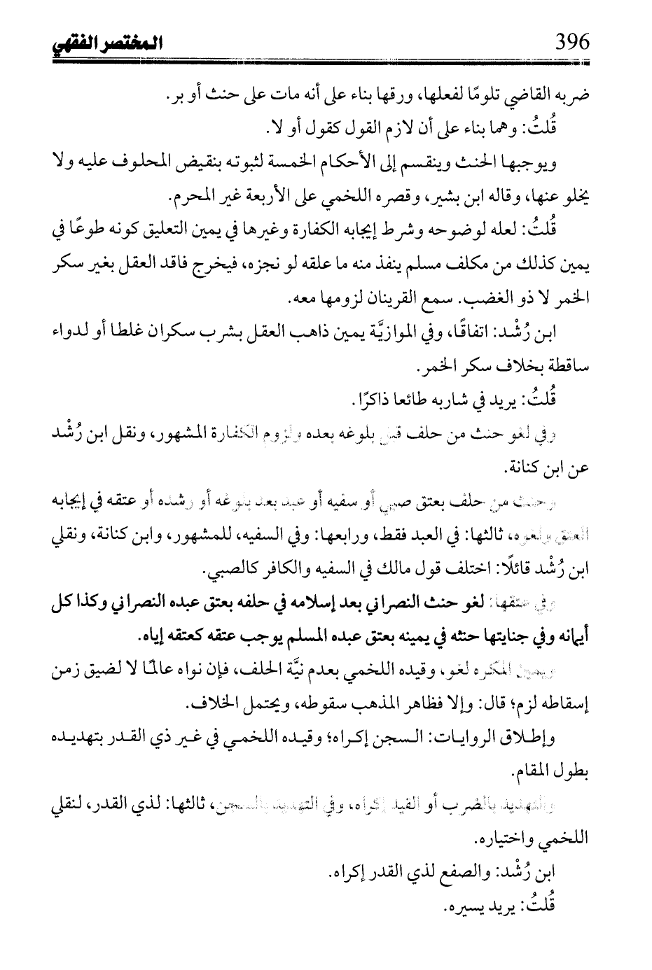 وفي لغو حنث من حلف قبل بلوغه بعده ولزوم الكفارة المشهور، ونقل ابن رشد عن ابن كنانة.