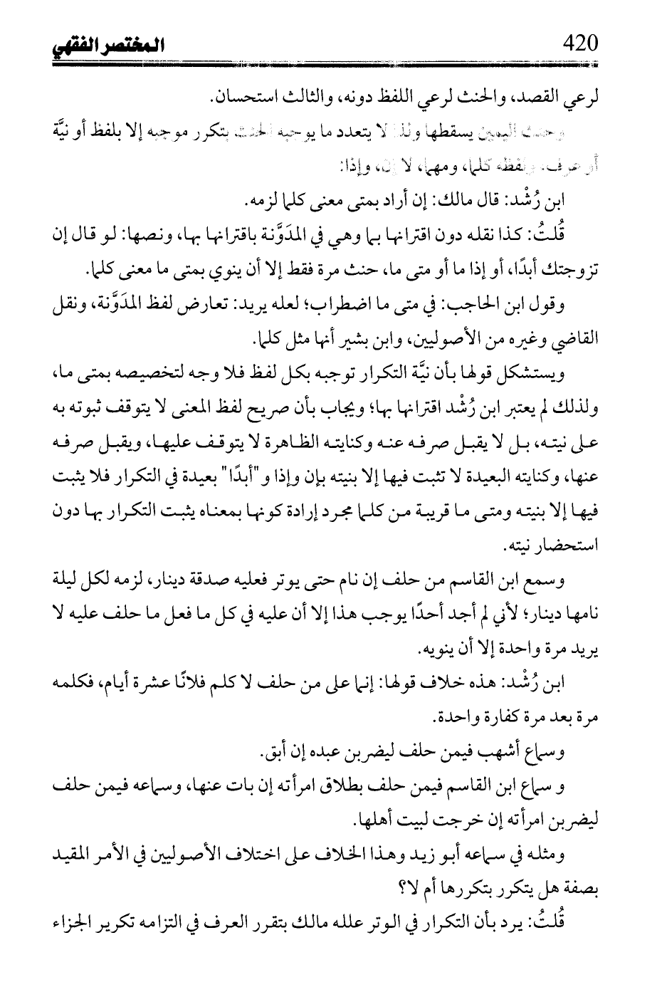 ابن رشد: هذه خلاف قولها: إنما على من حلف لا كلم فلانًا عشرة أيام، فكلمه مرة بعد مرة كفارة واحدة.