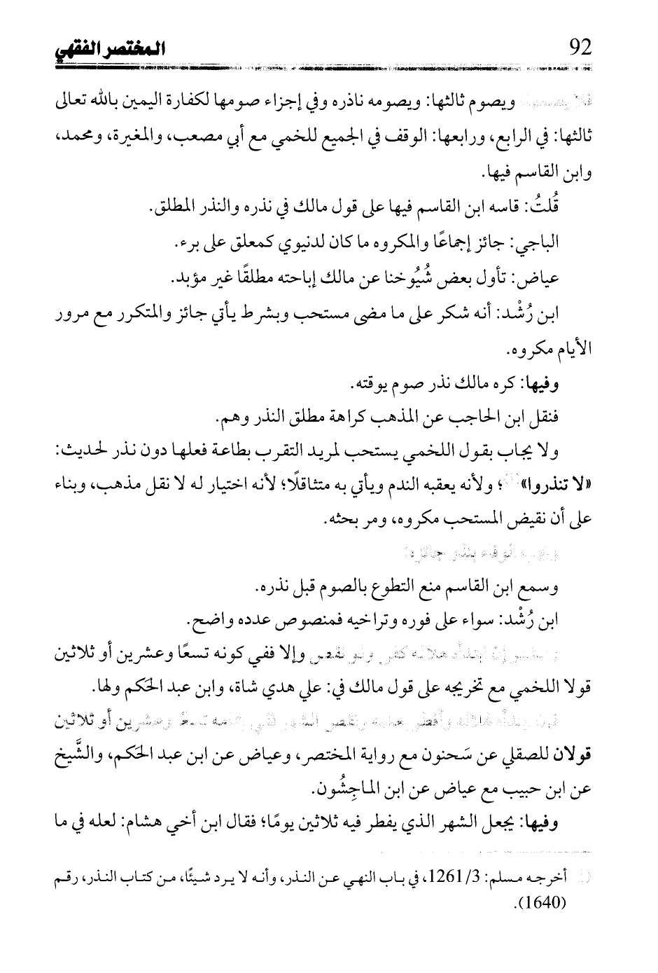 وفيها: كره مالك نذر صوم يوقته.