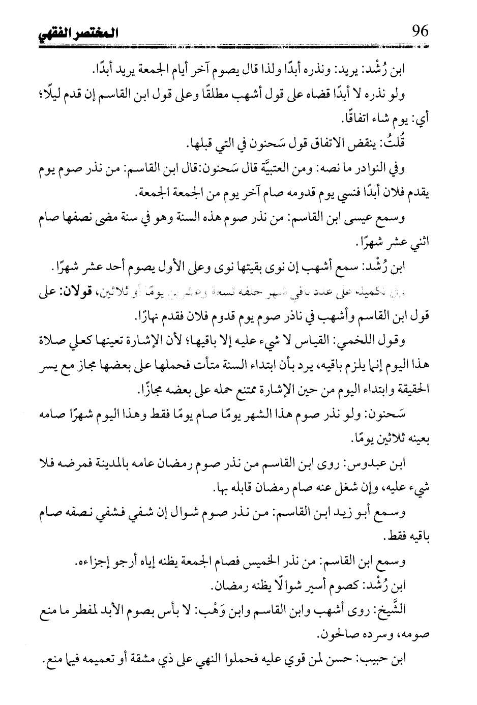وفي النوادر ما نصه: ومن العتبية قال سحنون: قال ابن القاسم: من نذر صوم يوم يقدم فلان أبدًا فنسي يوم قدومه صام آخر يوم من الجمعة الجمعة.