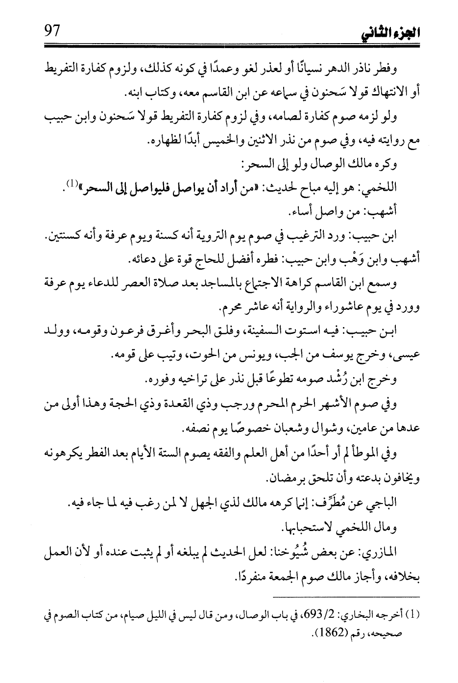 ابن حبيب: ورد الترغيب في صوم التروية أنه كسنة ويوم عرفة وأنه كسنتين.