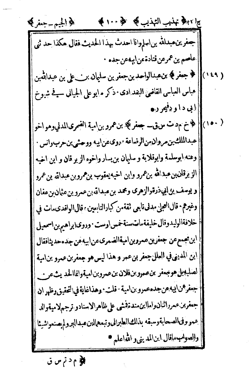 150- "خ م د ت س ق – جعفر" بن عمرو بن أمية الضمري المدني وهو أخو عبد الملك بن مروان من الرضاعة روى عن أبيه ووحشي بن حرب وأنس.