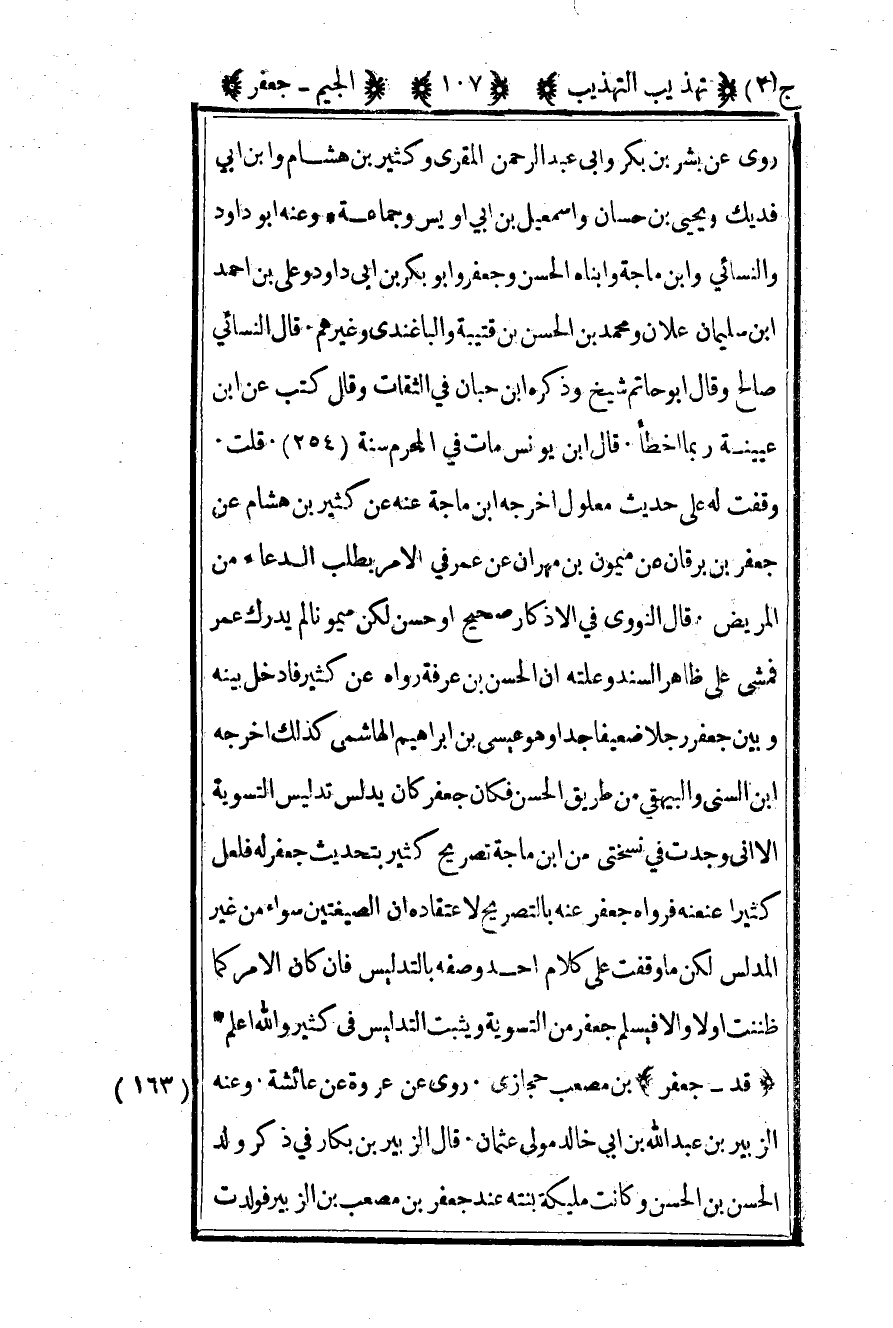 163- "قد – جعفر" بن مصعب حجازي روى عن عروة عن عائشة وعنه الزبير بن عبد الله بن أبي خالد مولى عثمان قال الزبير بن بكار في ذكر ولد الحسن بن الحسن وكانت مليكة بنته عند جعفر بن مصعب بن الزبير فولدت