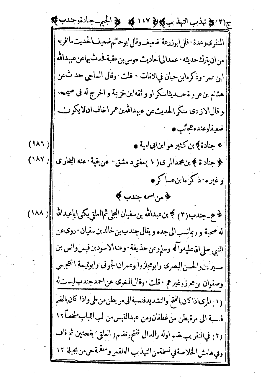 187 - "جنادة" بن محمد المري1 مفتي دمشق عن بقية عنه البخاري وغيره ذكره بن عساكر.