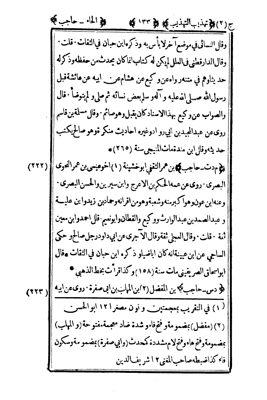 223- "د س – حاجب" بن المفضل2 بن المهلب بن أبي صفرة روى عن أبيه