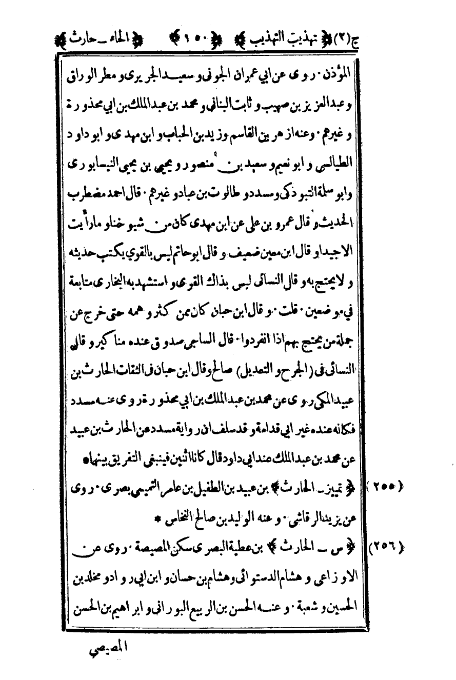 256- "س – الحارث" بن عطية البصري سكن المصيصة روى عن الأوزاعي وهشام الدستوائي وهشام بن حسان وابن أبي رواد ومخلد بن الحسين وشعبة وعنه الحسن بن الربيع البوراني وإبراهيم بن الحسن