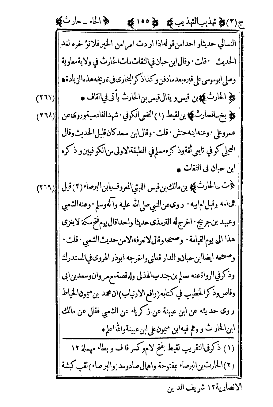 267- "الحارث" بن قيس ويقال قيس بن الحارث يأتي في القاف.