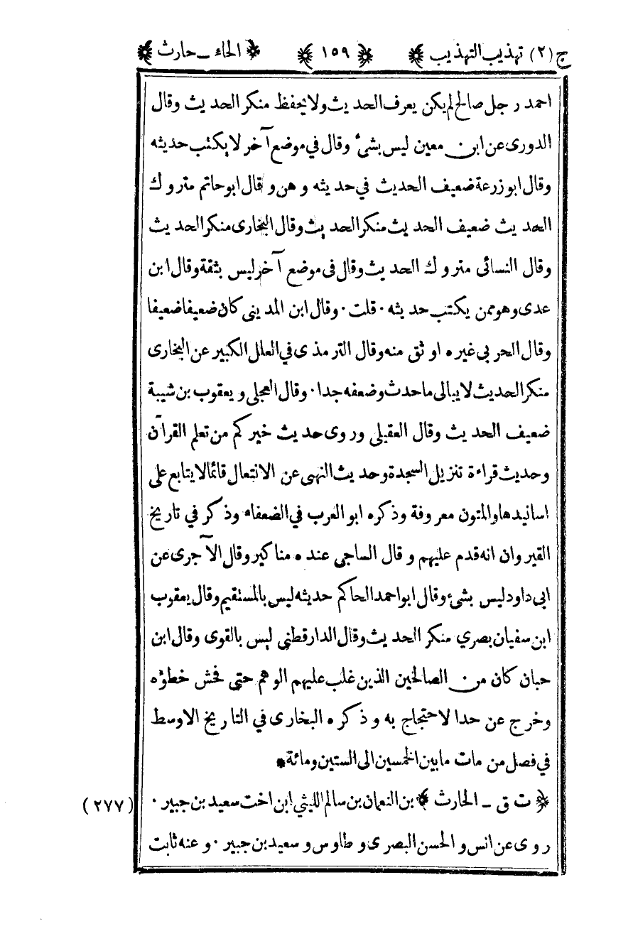 277- "ت ق – الحارث" بن النعمان بن سالم الليثي بن أخت سعيد بن جبير روى عن أنس والحسن البصري وطاوس وسعيد بن جبير. وعنه ثابت