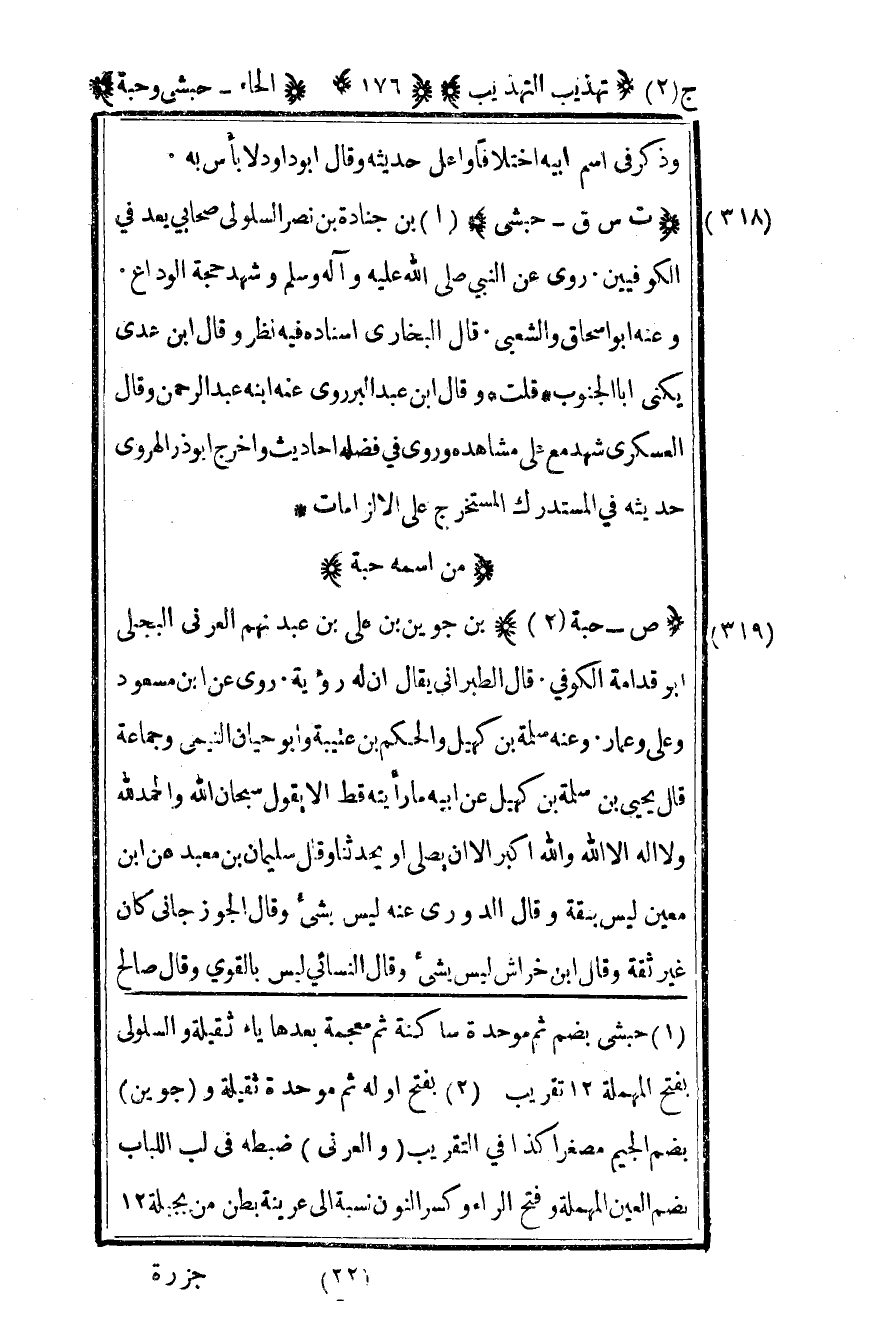 1 بفتح أوله ثم موجدة ثقيلة و"جوين" بضم الجيم مصغرا كذا في التقريب "والعرني" ضبطه في لب اللباب بضم العين المهملة وفتح الراء وكسر النون نسبة إلى عرينة بطن من بجبلة "12".