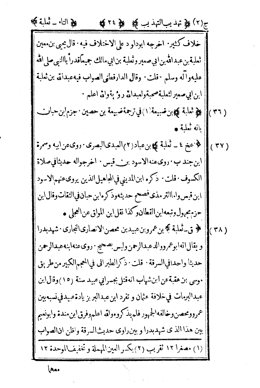 36- "ثعلبة" بن ضبيعة1 في ترجمة ضبيعة بن حصين جزم بن حبان بأنه ثعلبة.