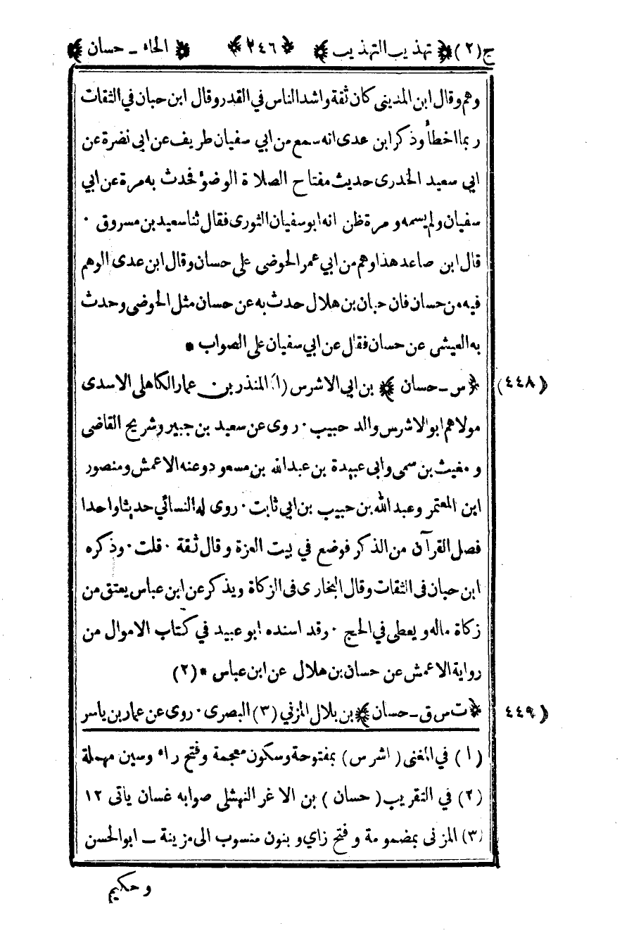 2 في التقريب "حسان" بن الأغر النهشلي صوابه غسان يأتي "12".