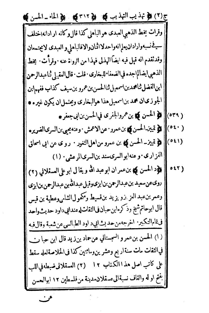 1 الحسن بن عمرو السجستاني عن حماد بن زيد قال ابن حبان في الثقات مات سنة أربع وعشرين ومائتين كذا في الخلاصة لعله سقط على كاتب أصل هذا الكتاب "12".