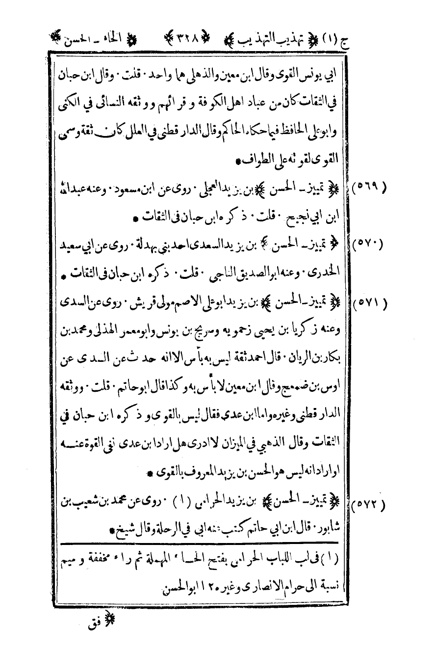 570- "تمييز- الحسن" بن يزيد السعدي أحد بني بهدلة روى عن أبي سعيد الخدري وعنه أبو الصديق الناجي. قلت: ذكره ابن حبان في الثقات.
