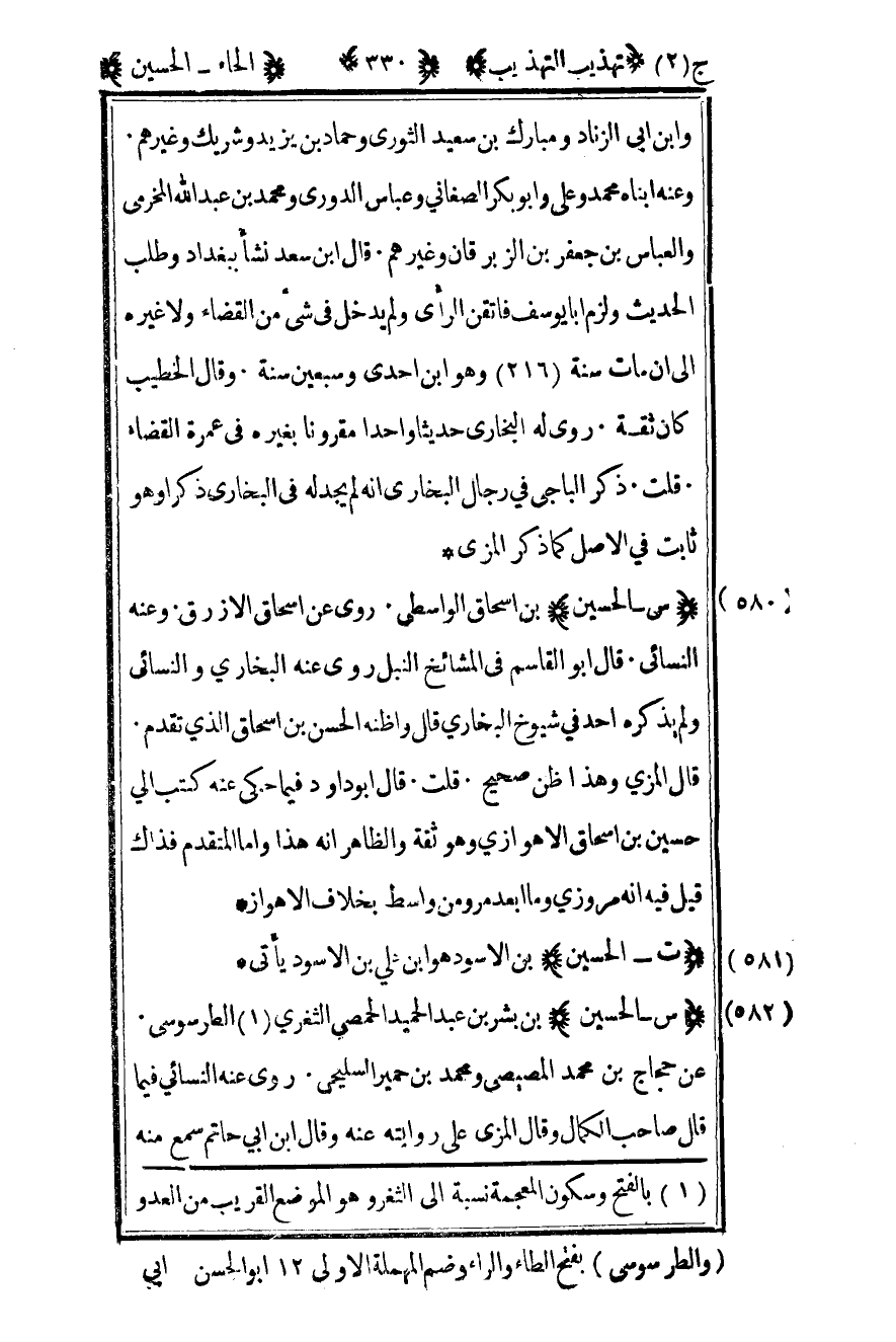 582- "س – الحسين" بن بشر بن عبد الحميد الحمصي الثغري1 الطرسوسي.