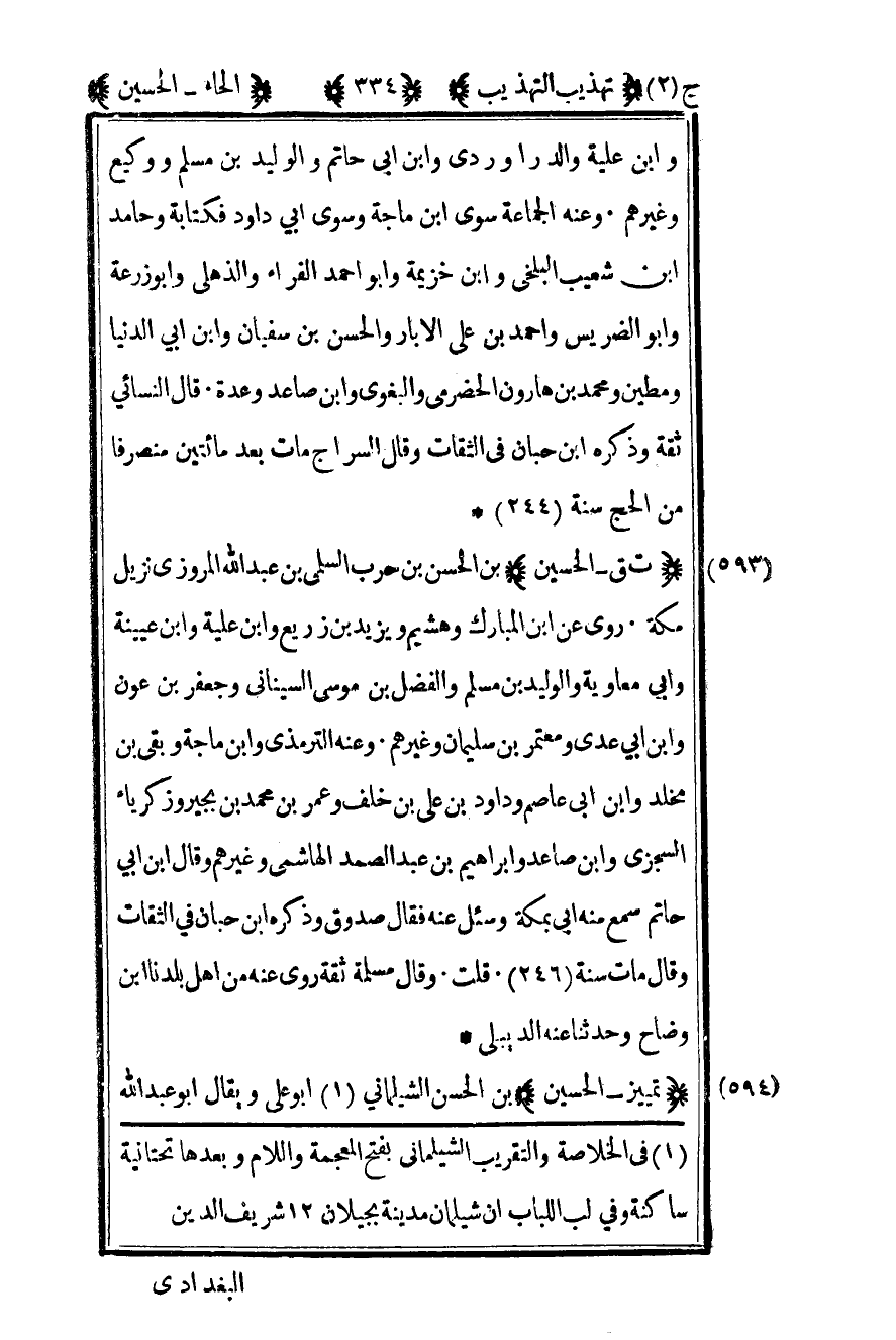 594- "تمييز- الحسين" بن الحسن الشيلماني1 أبو علي ويقال أبو عبد الله