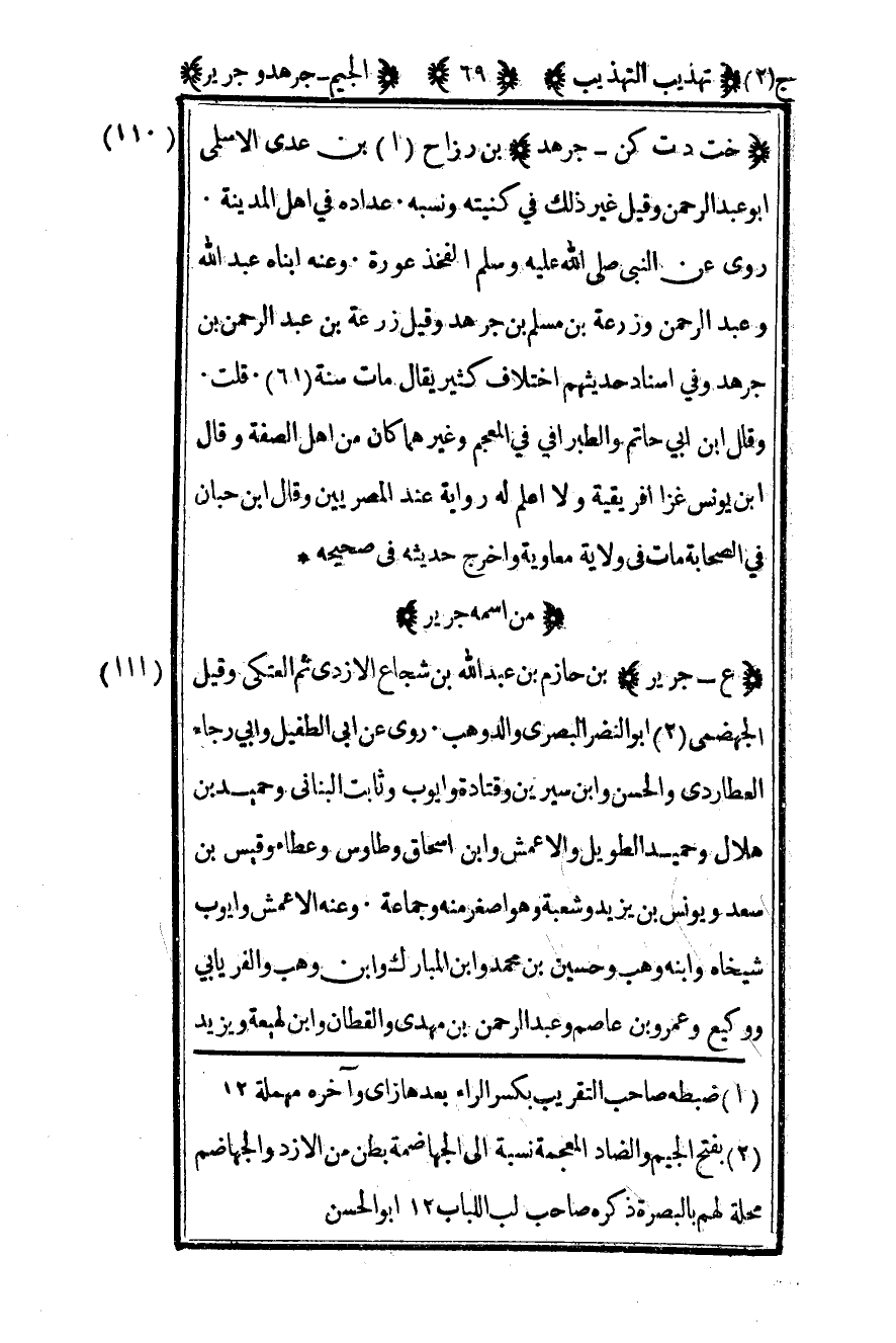 1 بفتح الجيم والضاد المعجمة نسبة إلى الجهاضمة بطن من الأزد والجهاضم محلة لهم بالبصرة ذكره صاحب لب اللباب "12" أبو الحسن.