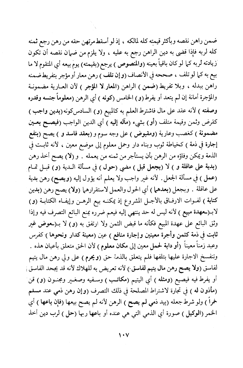 (وَإِنْ رَهَنَ ذِمِّيٌّ عِنْدَ مُسْلِمٍ خَمْرًا) وَلَوْ شَرَطَ جَعْلَهُ (بِيَدِ ذِمِّيٍّ لَمْ يَصِحَّ) الرَّهْنُ ; لِأَنَّهُ لَمْ يَصِحَّ بَيْعُهَا (فَإِنْ بَاعَهَا) أَيْ: الْخَمْرَ (الْوَكِيلُ) صُورَةً أَيْ: الذِّمِّيُّ الَّتِي هِيَ عِنْدَهُ أَوْ بَاعَهَا رَبُّهَا (حَلَّ) لِرَبِّ دَيْنٍ أَخْذُ